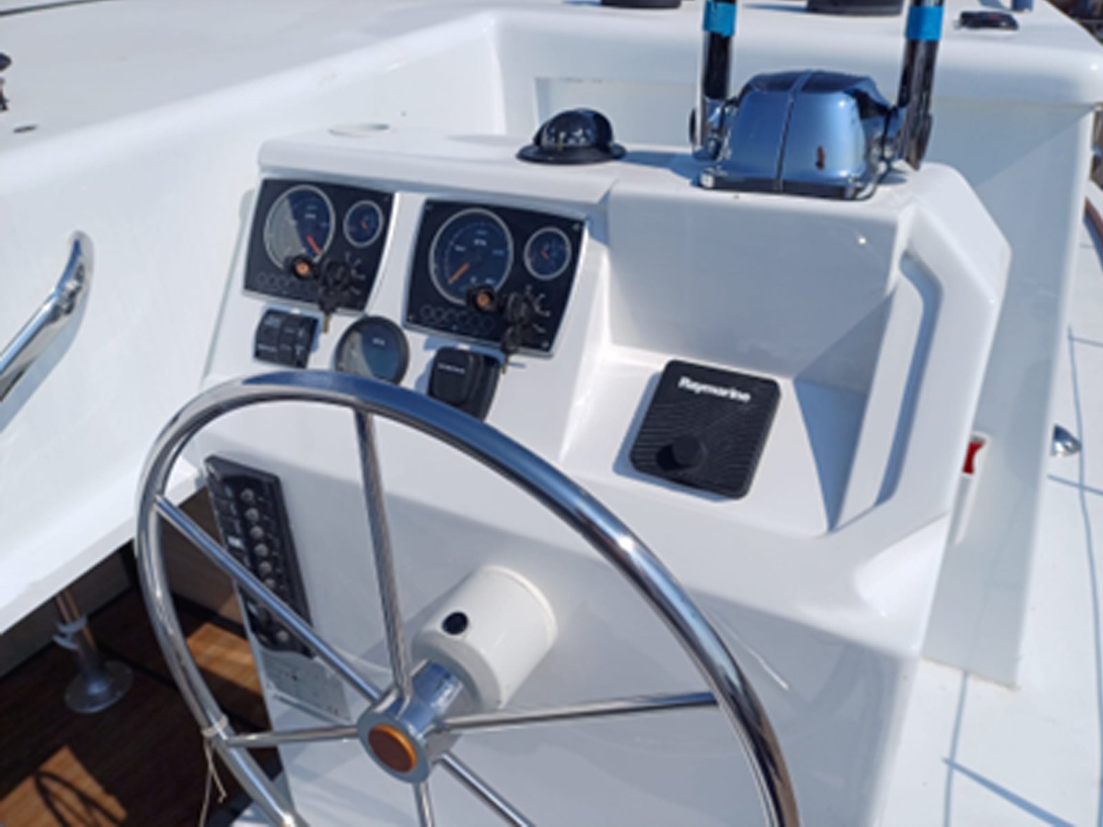 | Propulsion 2 x inboard diesel engine 16 hp Vetus 2 x Sail drive 2 x fixed pitch propeller Soundproof panels in engine rooms Rudder & steering system 2 x rudder in fiberglass Hydraulic steering system Raised helm station on the right side | |