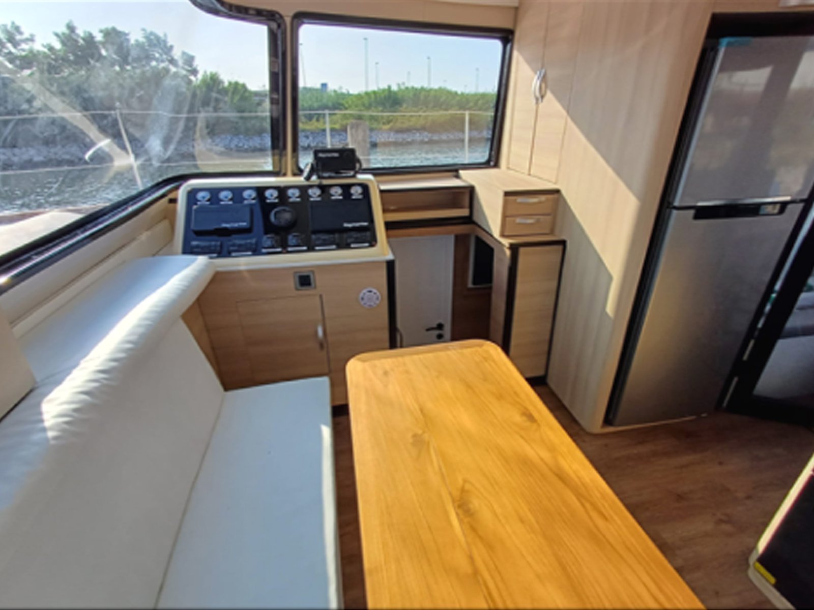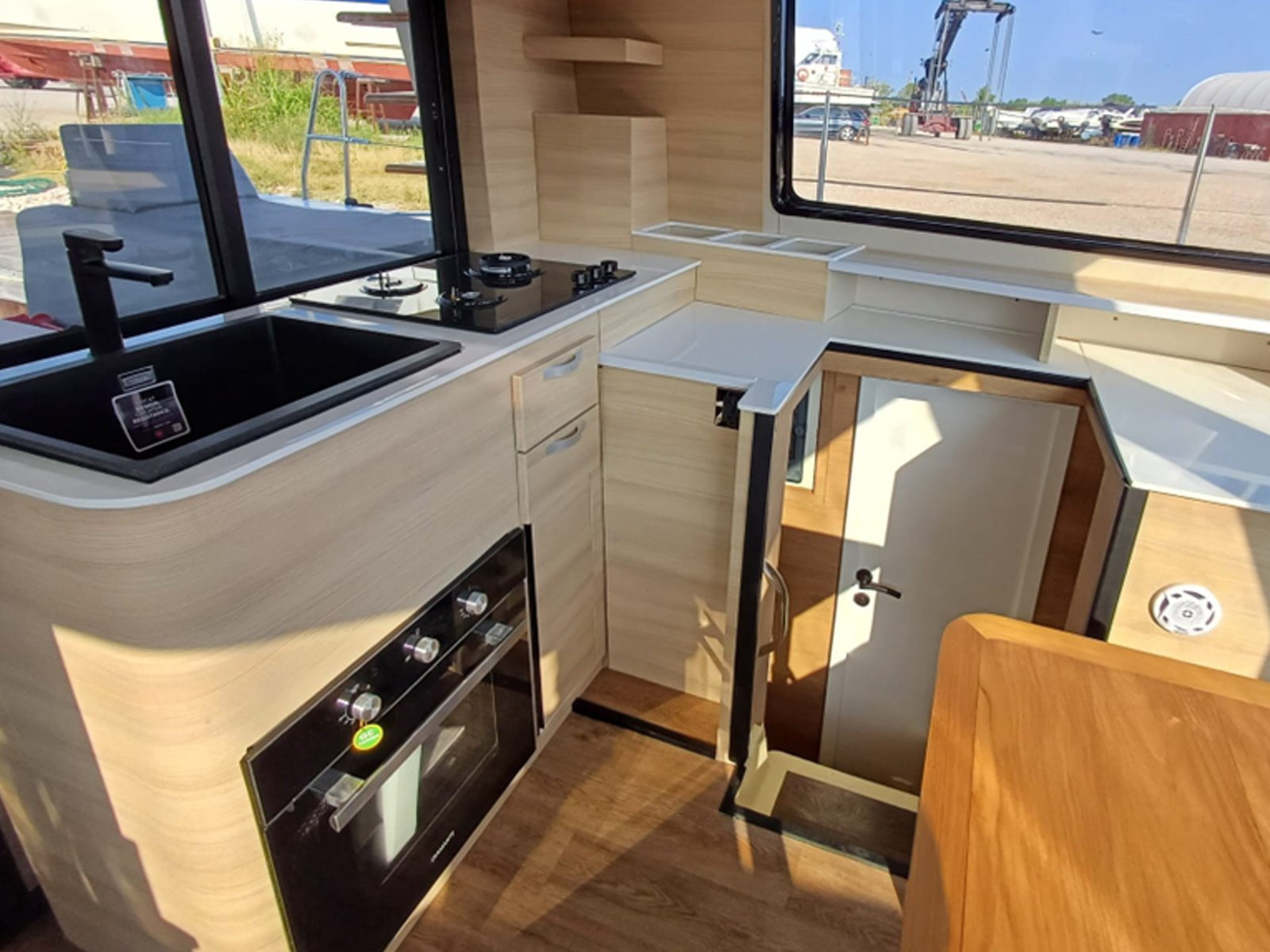 | Interiors as per layout L-shaped sofa Teak table Chart table with seat Vinyl flooring Kitchen Equipment and appliances as per list 130 lt refrigerator Sink and faucet Electric stove 3 burners Oven Cabinets and drawers | |