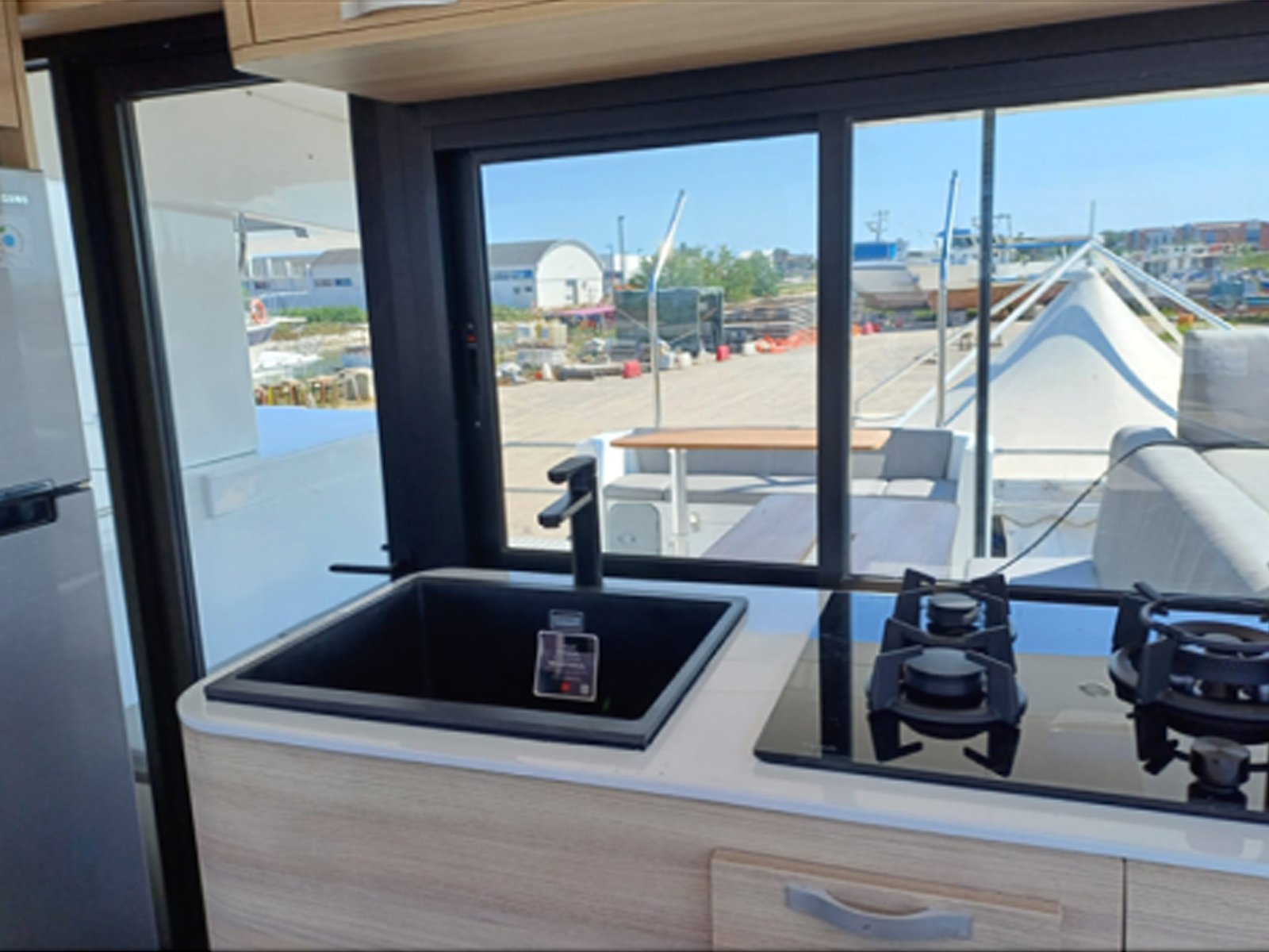 The exterior design impresses with its modern yet elegant and understated lines, a distinctive feature of Seaside catamarans, along with its robust and sporty spirit. The refined interior provides abundant natural light thanks to optimized window placements.