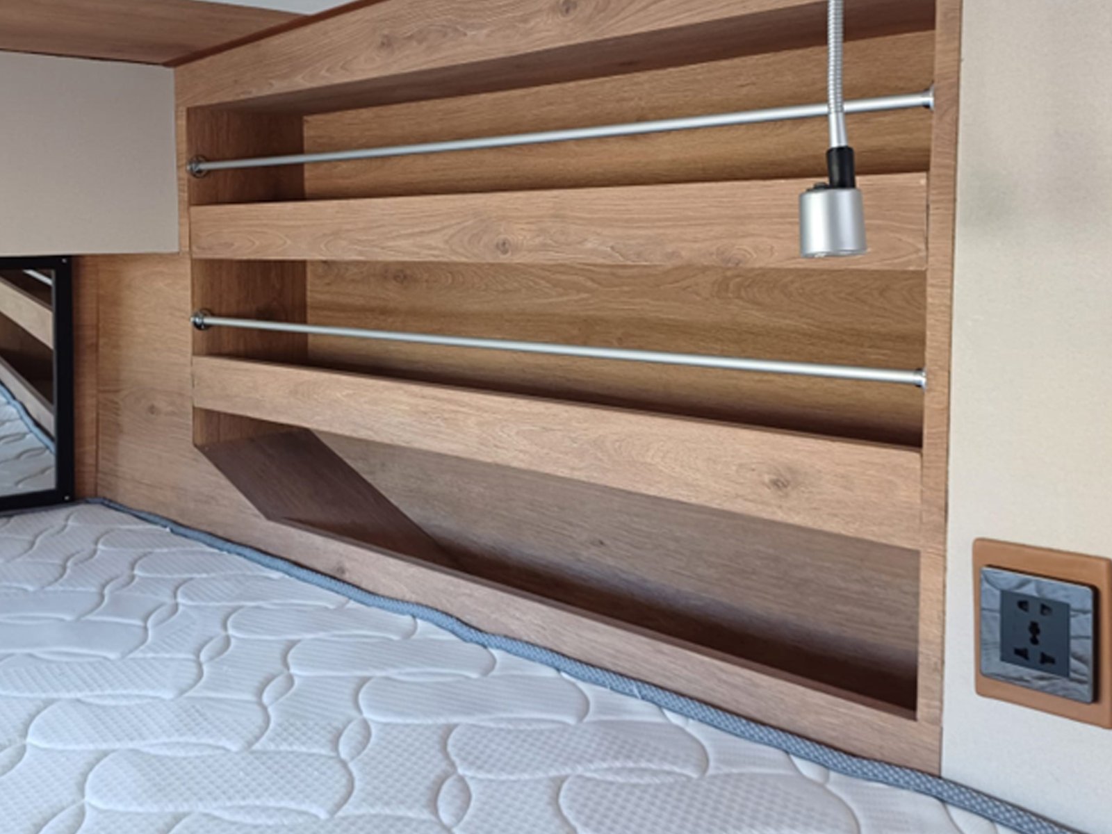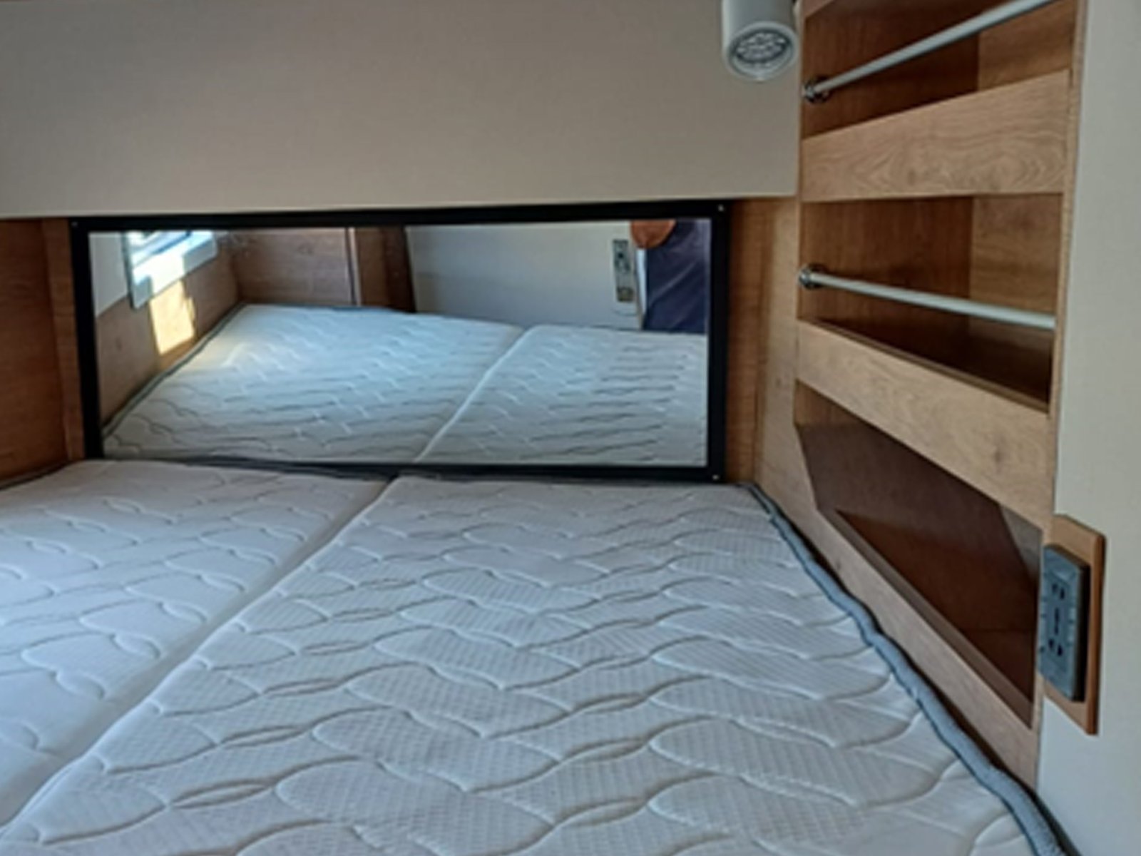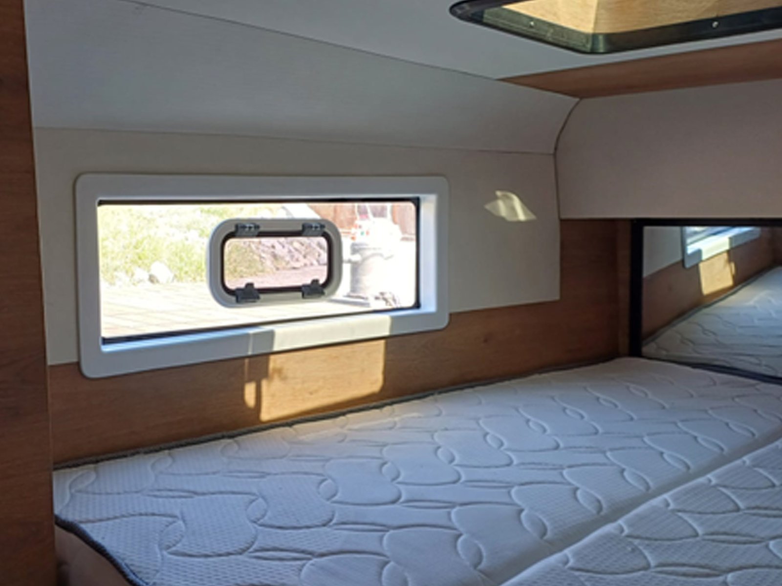 | Master bedroom as per selected layout Vinyl flooring Double bed with mattress and drawers Reading lights Wardrobe and drawers Table and armchair Guest cabin as per selected layout Vinyl flooring Double bed with mattress and drawers Reading lights Wardrobe and drawers Bathrooms as per selected layout Vinyl flooring Manual WC Shower Sink and faucet Accessories Cabinet | |